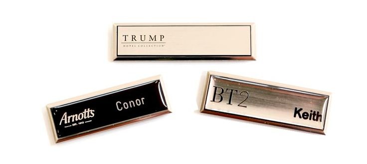 They can come in various shapes and sizes, and can have a pin, magnet or clip attachment. Some metal name badges can also have a clear protective coating,